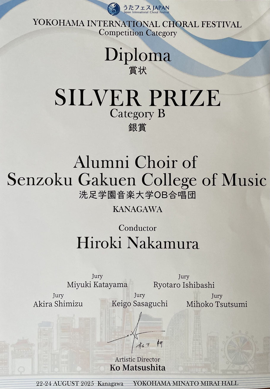《 横浜国際合唱フェスティバル コンテスト部門 》銀賞を受賞しました!ありがとうございました。